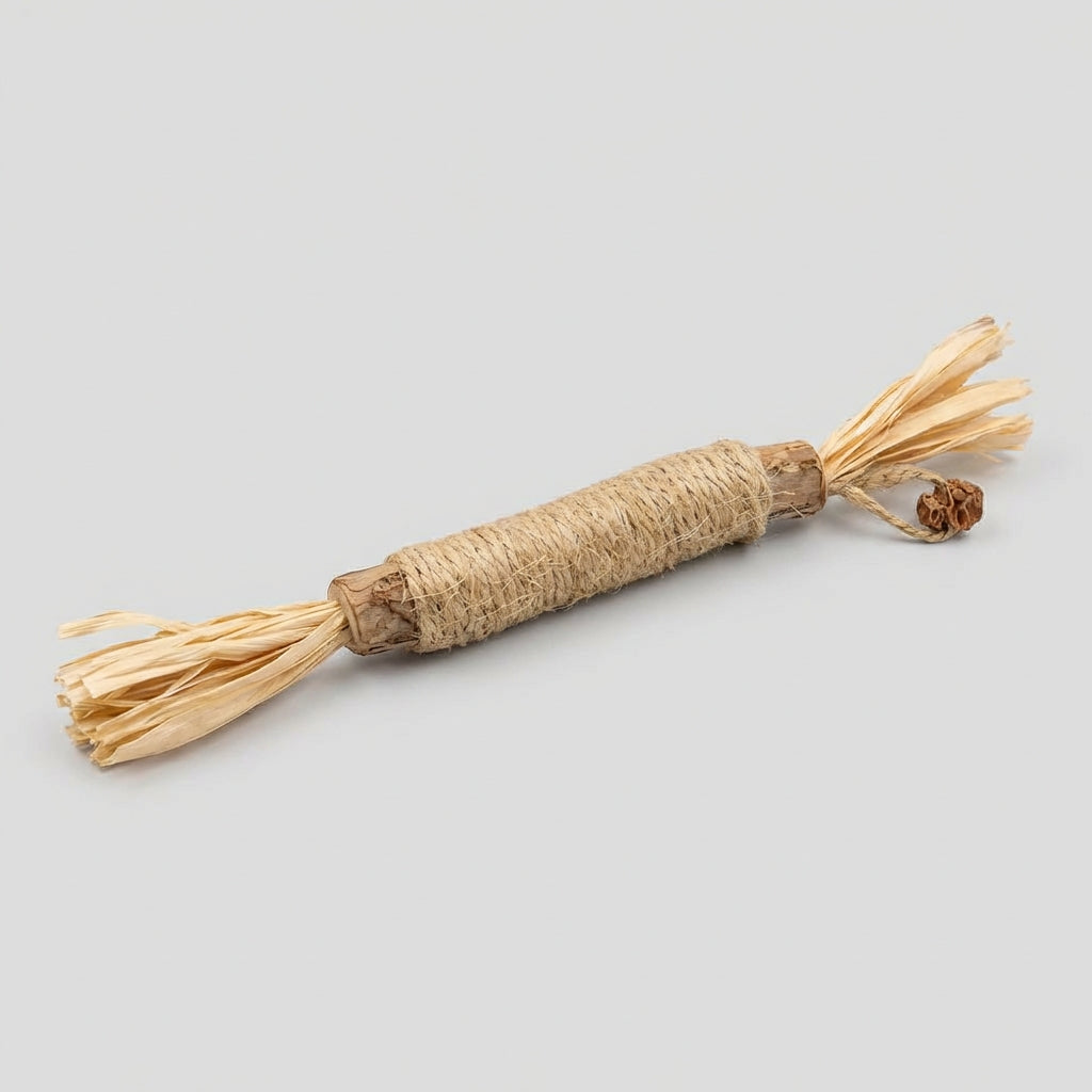 Træets tekstur masserer tandkødet og styrker kattens kæbe naturligt.